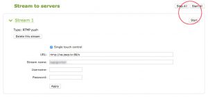 或者,您可以使用Pearl的觸摸屏控件來啟動(dòng)流。觸摸觸摸屏左上角的灰色圓圈。圓圈變成藍(lán)色并顯示您流式傳輸?shù)臅r(shí)間長度。再次按藍(lán)色圓圈可停止流。Pearl-2還為您提供了使用One-Touch控件同時(shí)啟動(dòng)您可能擁有的任何其他流的選項(xiàng)。您還可以使用Epiphan Live平板電腦界面從遠(yuǎn)程位置進(jìn)行移動(dòng)控制。