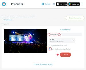 請務(wù)必選中“ 在Twitter上分享此廣播”復(fù)選框,將實(shí)時(shí)流推送到您的Twitter頁面。